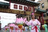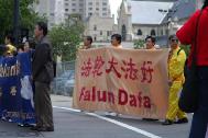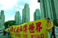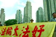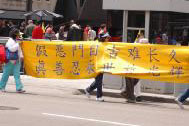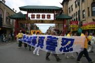 5月22日,在中国城举行以“法轮大法好”为主题的游行