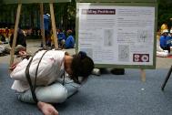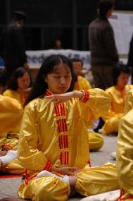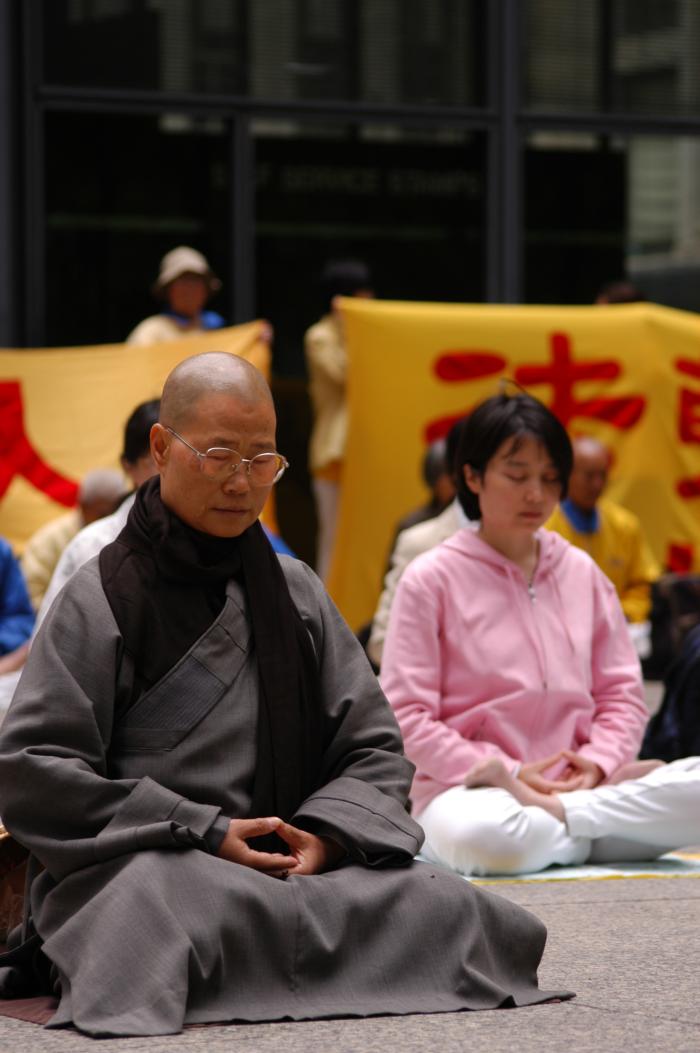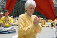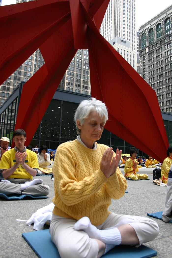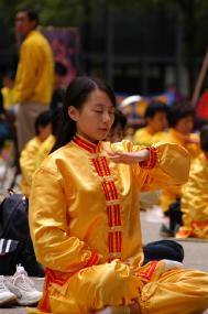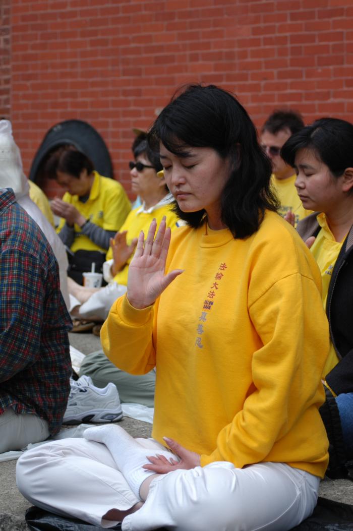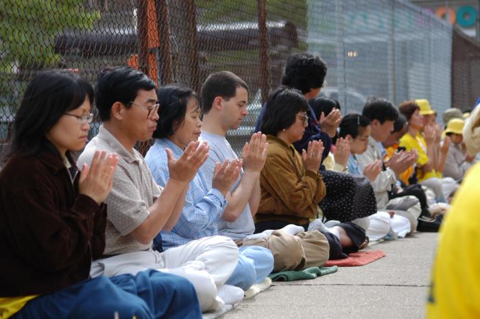 【明慧网2004年5月25日】(明慧记者徐兢报道)2004年5月22日,逾千名法轮功学员汇集芝加哥,在中国城和芝加哥市中心举行一系列大型和平请愿活动,更直观生动的揭露江氏集团在过去5年当中对法轮功学员的残酷迫害。请愿活动包括在中国城和芝加哥市中心的千人游行,以及在芝加哥联邦广场上主题为“迫害与信仰”的酷刑展,用真人实物演示江氏集团对法轮功学员的洗脑和酷刑迫害。