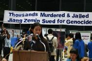 起诉江泽民的律师泰瑞马什在新闻发布会上说:“5月27日,美国第七巡回法庭就法轮功学员控告前中国国家主席江泽民酷刑、群体灭绝和反人类的罪名進行法庭辩论,在这场起诉当中,指控江设计、命令、贯彻并领导了一场试图在中国消灭法轮功的运动,被告江的行为导致了对成千上万的法轮功学员進行的有预谋的谋杀、失踪、广泛的酷刑和群体灭绝。”