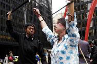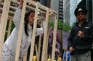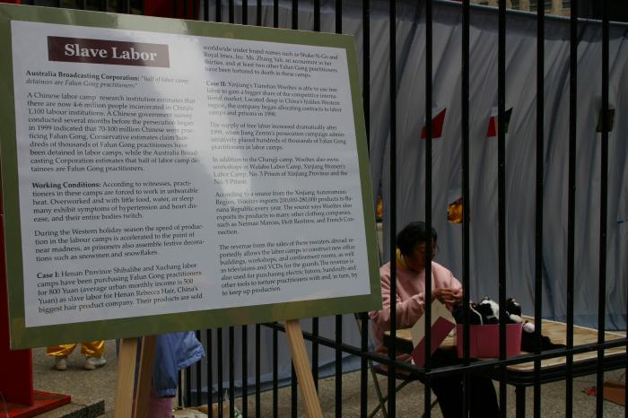 联邦广场上的以真人实物展示江氏集团对法轮功学员的酷刑