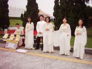 这些来自各行各业的法轮功学员利用假日的时间到景点去歌唱、发传单,与游客接触,只有一个目地,就是让人们知道「法轮大法好」「法轮大法是正法」的真象,并呼吁各界人士伸出援手,一同来制止发生在中国的「天理不容」的血腥镇压。
