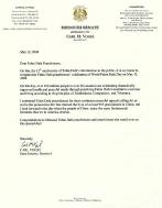 他说,我赞赏法轮大法学员不懈的和平呼吁停止迫害,这场迫害在中国已经夺去至少955名法轮功学员的生命。我盼望中国人民能够享有我们在美国一样的基本自由。在这特殊的日子,我谨向密苏里和世界各地的法轮大法学员表示祝贺。