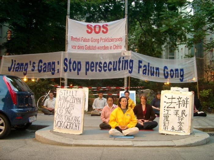 支持芝加哥诉江案 奥地利大法弟子使馆前炼功(图)