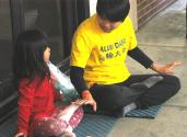 我注意到一位老太太在一旁注视了我们许久,脸上充满了惊与喜,口里不断的念念有词:“法轮功?!这是法轮功?林肯也有法轮功?!”我觉得有点心酸,她好像等了大法很久了……我赶紧递上我的联络资料。