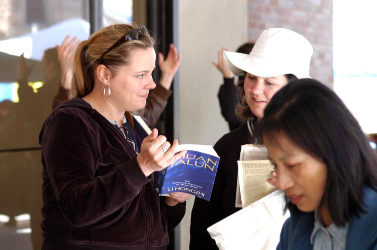 许多人对《转法轮》非常有兴趣并当场拿起来阅读,甚至有好几个西方人,包括小孩子,对中文《转法轮》极有亲切感并问着要。