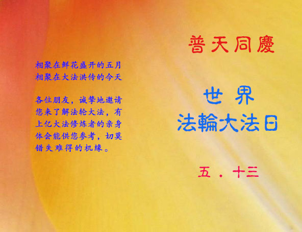 <英文版: http://www.clearwisdom.net/emh/articles/2004/5/11/47970.html>■ 庆祝第五届世界法轮大法日暨师尊传法十二周年