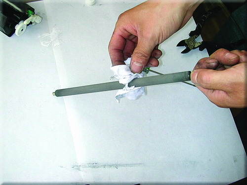 10.用斜口钳把刚刚顶出来的小铁销拔出来。