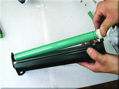 14.清洁充电辊后,进行充电辊和鼓芯的安装,对于鼓芯有划伤也可以进行更换。