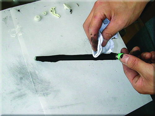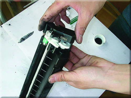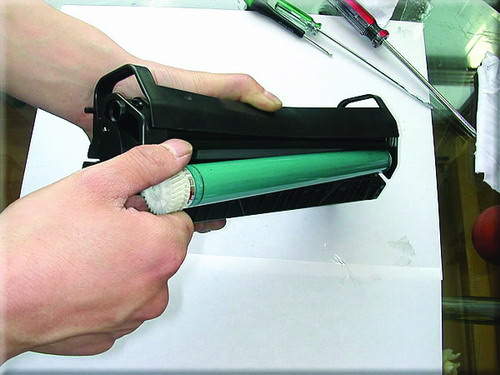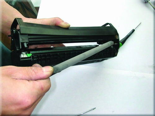 16.为了防止所加碳粉和原碳粉的不兼容,用布擦掉磁辊上碳粉。