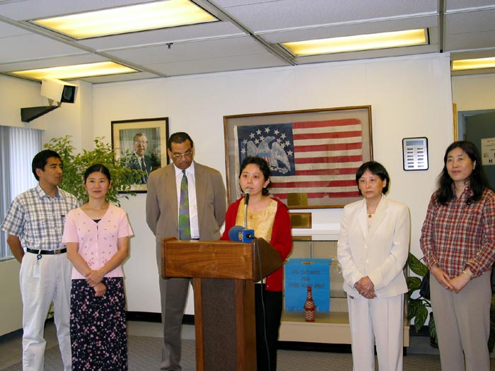![]() 市长宣读褒奖令 | ![]() 学员介绍当前法轮功在中国受到的迫害 | ![]() 学员介绍自己的修炼体会 |
