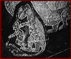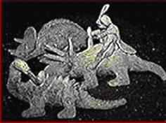 由这张霸王龙追着人跑的雕刻,我们想到雕刻这张图片的两种可能性:人类现在知道恐龙的样子,是挖掘出恐龙化石后,经过仔细的分类整理,然后以复原的方式拼凑出原来的骨架,再根据合理的推测而描绘出恐龙当年的样子。因此制作这种雕刻图案的第一种可能性是:这些雕刻ICA石头的人,具备与现在科学家同等的知识,可以藉由复原化石,绘制出恐龙的形态。另一种可能性就是:当年曾经有人类与恐龙生活在一起!