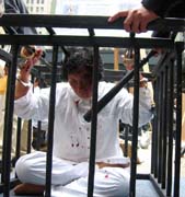 ![]() 关铁笼子 | ![]() 铐刑 | ![]() 电刑 |