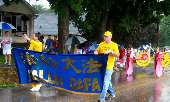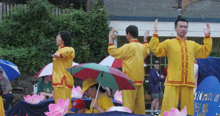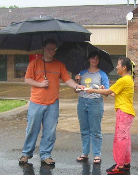 一个小时的游行很快就结束了,虽然我们每一个人都浑身湿透,但看到又有一批生命因此有缘认识了大法,我们由衷的感到欣慰。