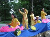 了解到印第安纳州的学员人数有限,圣路易斯的学员们也驱车数小时主动赶来帮忙。大家整体一致,配合默契,很快就把圣路易斯的学员带来的大法花车装扮一新。