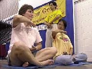 报道说,丹妮特-多娜吉(Danette Donaghy)女士在学习法轮功,法轮功也称法轮大法,是改善身心健康的中国古老功法。