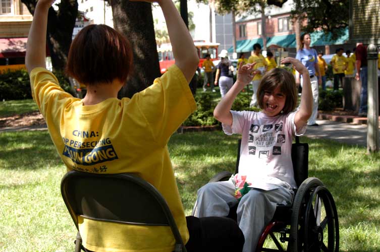 10、酷刑展的最后一天,有一位年轻人在酷刑展台前徘徊半天,留连忘返。经一位法轮功学员询问,才知道他想知道更多的关于法轮功的事情。他对法轮功学员说:他不知道众多的玩具背后竟然隐藏着法轮功学员以及其他监狱犯人被强迫做奴役的辛酸的故事,他会告诉亲朋好友停止买中国的劳工产品。同时他还表示很遗憾,他一直到今天才知道有这么好的一个性命双修的功法,这正是他长期以来所寻找的。他急切地询问,在Savannah是否有炼功点,他希望尽快学会炼功。