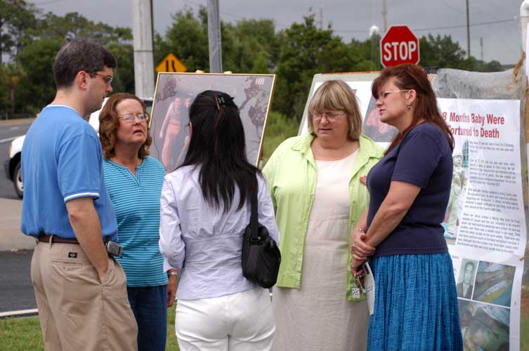 9、6月10日是酷刑展的最后一天,一位白人长者对法轮功学员说:我是一个基督徒,你能告诉我你们老师是怎么看待耶稣的吗?法轮功学员告诉他说:我们老师说耶稣是一个伟大的神,是来救度世人的,但是我们李老师是来救度更多的人的。现在在中国发生的对法轮功的残酷迫害就是当年迫害基督徒历史的重演。这位长者对学员说,我一定要告诉我们教堂里的人,为法轮功学员祈祷,让他们不要买中国劳教所里生产的产品。当他离开后,一位当地的居民告诉这位法轮功学员说:你知道刚刚跟你谈话的那位先生是谁吗?他就是这里神学院的创始人,并且还是两个大教堂的牧师。
