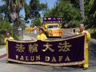 在整个游行过程中,法轮功队伍是伴随着观众的掌声一路走来的。人们以各种方式向法轮功表示敬意,欢迎和感谢。在游行沿街所设的广播点,不停地向观众介绍法轮功功法,法轮功在世界洪传情况,法轮功创始人所获得的褒奖,以及免费在圣地亚哥教授法轮功的情况。