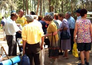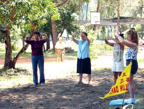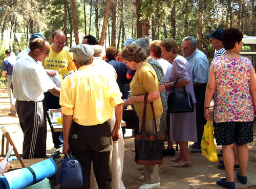 在午餐开始前,学员们向所有学功的人简单的介绍法轮大法并讲述了正在中国发生的对法轮功学员的残酷迫害。人们很难相信这个他们刚刚体验到的如此美好的功法竟会在中国遭到镇压。最后,人们以热烈的掌声表示他们对在中国受到迫害的法轮功学员们的支持。