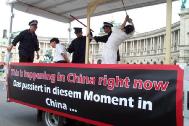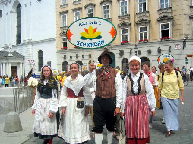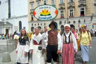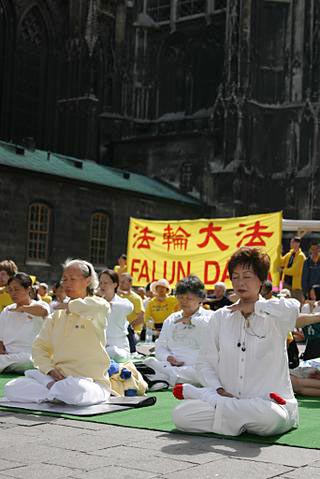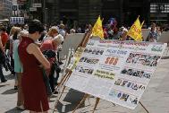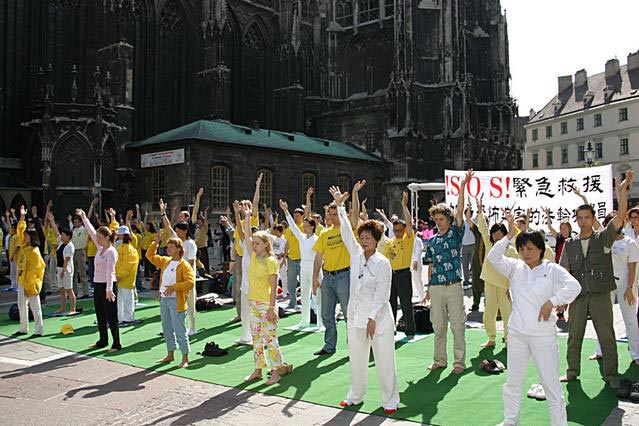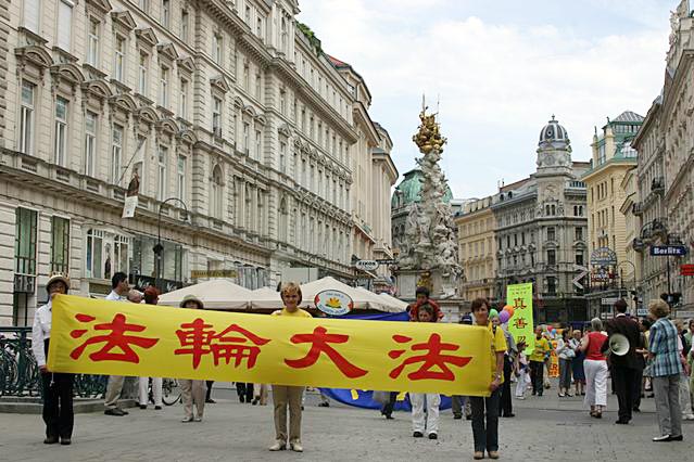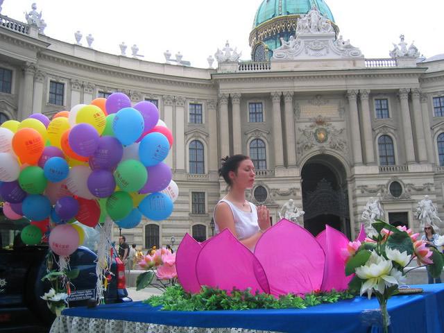 大街两旁站满了市民和游客。他们向法轮功学员的腰鼓队、莲花舞等报以掌声,并对每日发生在中国的酷刑演示露出惊异和难过的表情。部分法轮功学员身着当地民族服装,向人们反映出欧洲各民族人民得法后的喜悦。