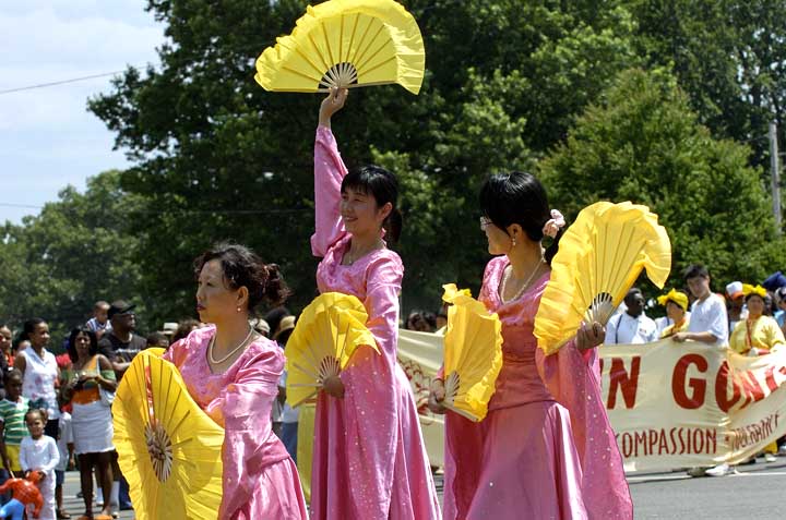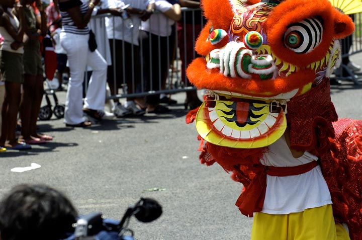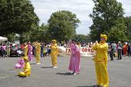有来自加勒比海各国以及非洲、亚洲、拉丁美洲、南美洲等表演队伍参加了本次游行。其中法轮功学员的表演队伍独树一帜。有祥和的法轮功功法表演、中国传统狮子舞表演、扇子舞表演和腰鼓表演。“法轮大法”、“真善忍”的横幅在队伍中非常醒目。