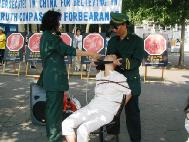 法轮功学员6月25、26日将继续在市中心举行反酷刑展。