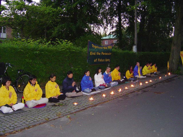 来自瑞典哥德堡,马尔默的学员,有几位第二天就要奔赴非洲的正法之旅,有的带着年幼的孩子,但是种种困难没有阻挡住学员们救度世人的心。为了给这一天的“世界反酷刑日”画上一个完整的句号,他们到中国使馆前参加烛光守夜,结束后,在深夜才驱车回去,准备下一站正法之行。有学员说,正法形势的推进越来越快了,我们必须加快自己的步伐,尽最大努力去讲真象,救众生。