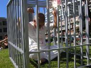一位美国男士一开始以不认同的目光看待学员的反酷刑展。他说,这样的展示影响市容,而且大陆的事情和美国人也没有关系。学员向他解释说,在大陆,这样的迫害是秘密進行的。许多学员被折磨致死后,他们的亲戚才知道。今天我们在美国这样的国度得以把它揭露出来,由此让人们了解。通过西方媒体、游客、亲朋好友的传播,会使蒙在鼓里的大陆人民逐渐了解真象。人最可悲的就是在被欺骗、不明真象的情况下作出助纣为虐的事来。这位男士听后豁然开朗,称赞学员为公众的负责。
