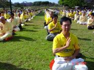 6月1,美国北卡夏乐市大法弟子夏琼芬应邀来到当地McLeod 高中对全校师生作了100分钟的演讲。演讲的内容包括高雅的中国传统文化在文革中被破坏殆尽,从“六四”学生运动谈到对法轮功的迫害,她还讲到了2002年她与100多名西方学员上天安门拉横幅遭到迫害的亲身经历,她的勇气和力量深深感染了学生们。最后她将五套功法教给了学生们,全体师生都参与了,连躺在课桌下睡觉的小孩都起来盘着腿急着要学功。