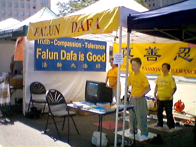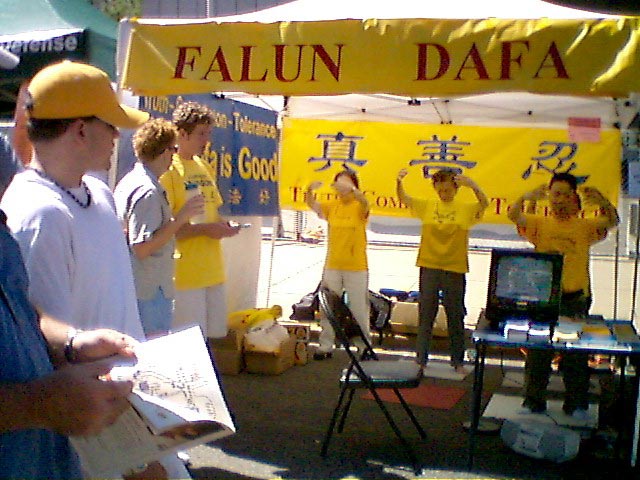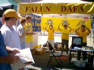 【明慧网2004年6月7日】2004年6月5-6日,科罗拉多州举办第三十三届国会山庄民众集市,吸引了超过27万的来自科州及邻近几州的游客。集市设有300多个摊位。当地法轮功学员参加了该活动,向民众展示法轮大法的5套功法,并与游客交谈,向他们介绍法轮功及在中国发生的