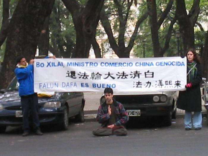 進入会场的学员在会议前也在发资料,被大使馆干涉并且叫安全人员把学员赶出去。学员说他们也有权参加会议,阿根廷安全人员没有理会中国大使馆的无理要求,只请学员暂时不要在场地内发传单但是可以留下,参加会议。在薄发言前坐在场内的人都在坐着看薄迫害大法弟子的资料。很多人在薄发言时又拿出我们发的印有薄迫害法轮功事实真象的简介看。结果会议也没有给任何人提问题的机会。