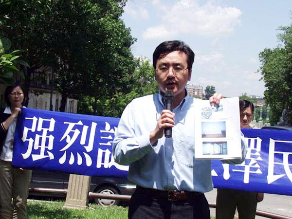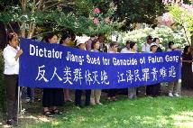 【明慧网2004年7月1日】(明慧记者王瑞林华府报道)惊闻6月28日发生在南非的曾庆红雇凶杀人、枪击澳洲法轮功学员事件,华府法轮功学员于2004年6月29日在中国驻美大使馆前举行新闻发布会,强烈谴责江氏集团的恐怖主义行径。
