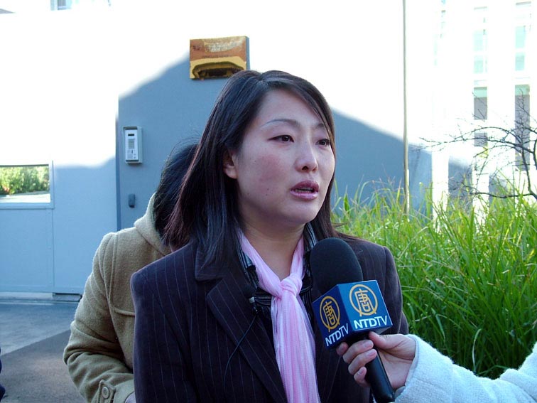 ![]() 新闻发布会上法轮功发言人John Deller 介绍枪击案详情 | ![]() 同David Liang一同前往南非的李先生的妻子李迎在新闻发布会上接受采访 |