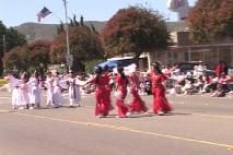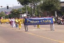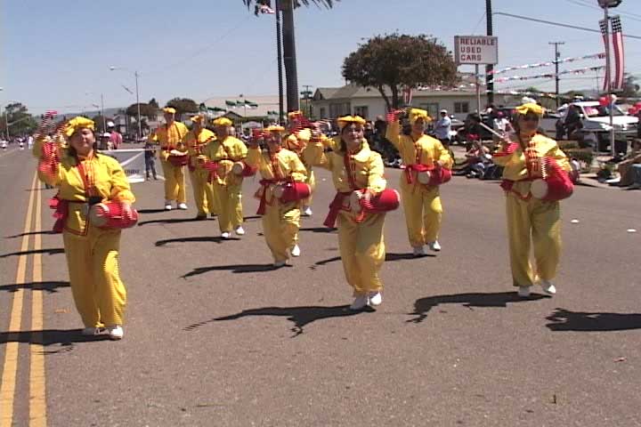 虽然到隆坡克市要花三个小时的车程,但考虑到那地区的人可能从未听说过法轮功,洛杉矶法轮功学员决定克服距离的遥远,报名参加了6月26日的游行。今年的游行是第五十二届了。虽然是在小镇的街道上,路边却挤满了大约四、五千的人来观看游行。今年参加游行的团体有一百多个。洛杉矶法轮功学员组成了仙女和腰鼓队,游行中不断的得到观众的掌声及喝彩。腰鼓队赢得了今年的创意奖第一名,而仙女队则得到了游行队伍奖第二名。