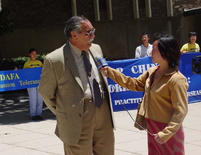 在同学员的交谈中,纳提维达议员说,我们不仅要在这里谴责江氏集团的恐怖主义行为,还要在美国,在全世界的各个地方,包括在中国大陆,都要抗议对法轮功学员的迫害行为。为了表示对法轮功学员的支持,纳提维达议员在发表演讲后,亲自同学员一起举起“制止将国家恐怖主义输出海外”的横幅。纳提维达议员还接受了媒体采访。