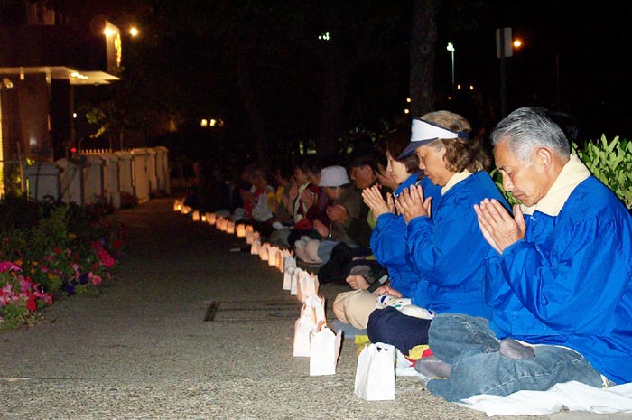 洛杉矶学员中领馆前烛光悼念千名同修 谴责江氏集团暴行(图)