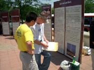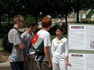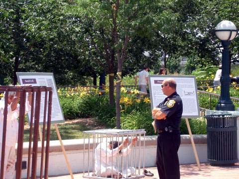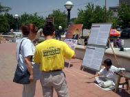值得一提的是,为了支持此次酷刑展,伊利诺伊州和俄亥俄州的学员长途驱车赶来参加,在烈日下布置展板和道具,演示酷刑,发放真象资料,不辞辛劳。此次酷刑展的成功是很多弟子一起努力的结果,包括各城市学员间的协调工作、联系车辆和展板道具、作酷刑演示、联络媒体、联系展出场地等,真正体现了大法弟子整体的力量。正如法中所说,“大法弟子作为一个整体在证实法中协调一致法力会很大。”(《2003年元宵节在美国西部法会上解法》)