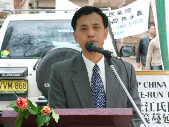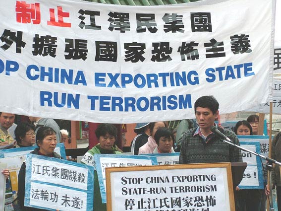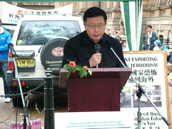 来自民主中国阵线的秦先生和张先生在集会上对江氏集团制造的南非凶案发出猛烈抨击并抗议恐怖主义在澳洲大陆延伸。张先生指出江集团就是一个恐怖主义组织。