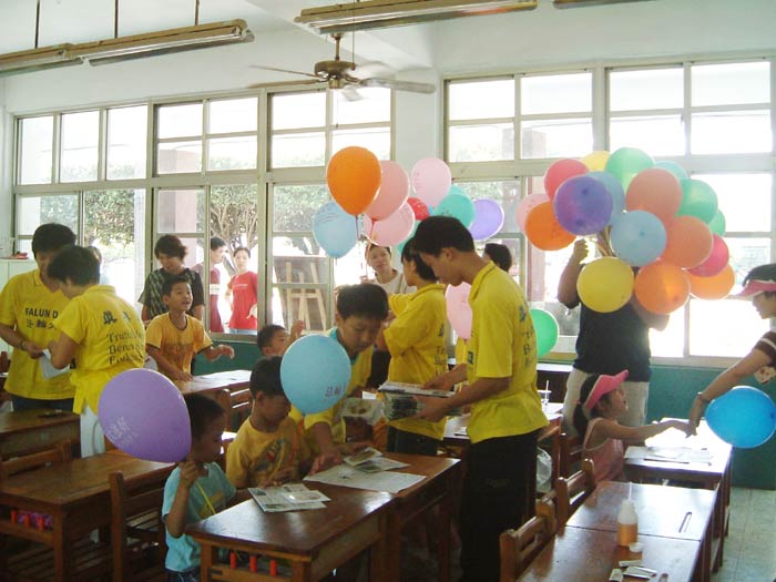 活动结束前主办单位发给每位孩子:“明慧儿童夏令营”学习联络单、法轮大法的简介资料、“世界需要真善忍”汽球。手拿五彩缤纷汽球的孩子们结束第一天的课程,开开心心的踏上归途。