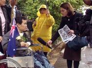 一位来澳旅游的英国人,他朋友家在总理府邸附近,当他得知这些手拿鲜花和信件的人群是来希望总理关注恐怖主义事件,特别是澳籍法轮功学员在南非遭遇的枪击案时,他毫不犹豫的加入了队列之中。他告诉记者,他也要加入队伍,表达自己的反恐怖主义的愿望;他在英国已经听说过法轮功了,并且很关注这个团体和他们在大陆所遭受的严重迫害。
