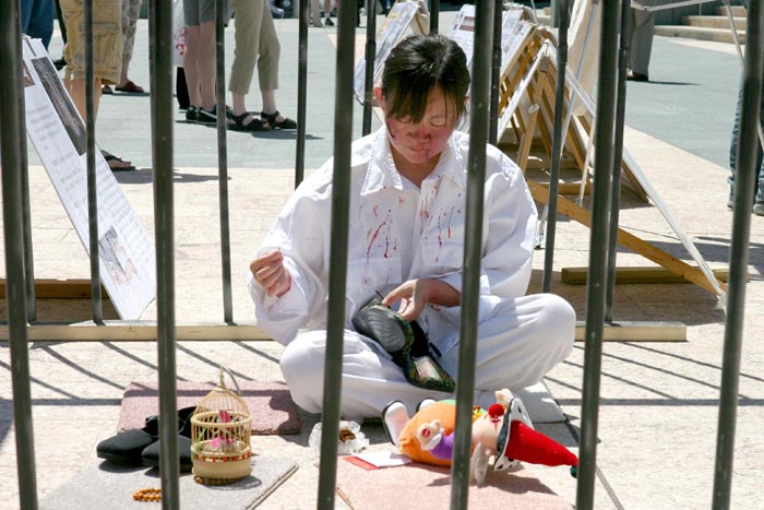 开车两个多小时来到旧金山演示被关在铁笼子里的刘姓学员说,“站在这儿,我就想到国内的法轮功学员承受了很多。”她希望观众能通过酷刑展,唤起他们心中的善念,能站出来制止江氏集团对法轮功学员的非人道的迫害。她说,其实这也是为了每一个人,为了大家。