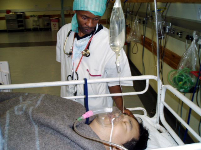 大卫被抬進医院后進行了几个小时的手术,我和另一同修在门外守候,手术完成后,我们進去看见大卫的脚包裹着厚厚的纱布,血透过纱布不断的流到地上,我去叫护士,护士又拿了一大包纱布裹了一层又一层,过了一会儿血又透过新的纱布流到地上。大卫告诉我他口渴,很想喝水,我想他是失血太多。