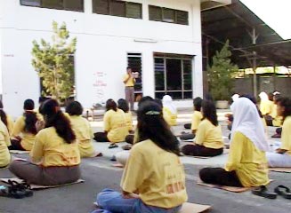 梭罗在印尼爪哇岛中部。在梭罗市郊,有一家拥有两百多名职工的私企纺织厂。两年前工厂主人在电视上看到了有关法轮功的消息,因此打开电脑了解事实真象后,联络法轮功学员而得法,得法后,把工厂职工带动起来,集体炼功学法。他们分成上下午两班,每天在上班前和下班后集在一起炼功和听法。因为当时印尼文版的《转法轮》缺乏,所以每天由辅导员读《转法轮》里的一个章节(比较长的分成几次读)给大家听。这样,时间久了,职工们的心性提高了,身体素质提高了,工作效率也好了,精神面貌改变了,两年来他们听完了七遍《转法轮》。还没炼功之前,大家工作不很认真,烟头纸屑随处丢,不注意卫生,炼功后大家都能够自律,而且还把宝贵的功法带回家去,教左邻右舍炼功,就这样,他们在附近也组织了几个炼功点,大人小孩跟着一起炼。