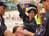 台湾联合报报道,台湾法轮功学员百余名成员昨天傍晚在台中火车站前广场,表演在中国持续发生的四大严酷刑罚,因行动剧的演出过于逼真,人物流血的妆扮吓坏驻足围观的民众,有人直呼“好残忍啊!”法轮功学员希望让世人了解中共在大陆逼迫法轮功的恐怖手段。