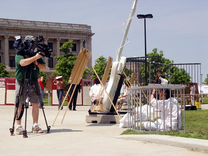 “迫害与真理”反酷刑展是法轮功学员带给这个历史名城发生在中国的残酷迫害法轮功的一个缩影。2004年7月8日和9日,这个展览在克里夫兰繁华喧嚣的公共广场和市政厅旁吸引了成千上万的参观者。