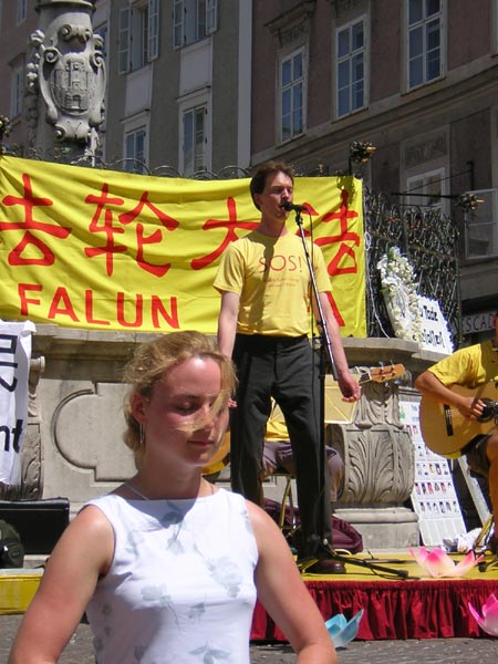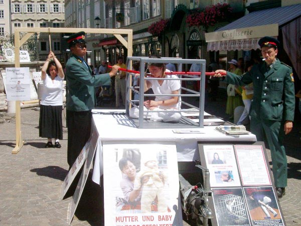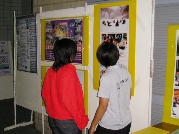 2004年7月17日,澳洲悉尼法轮功学员在市中心Town Hall举行反酷刑展和图片展,同时在Town Hall和海德公园进行谴责江氏流氓集团南非雇凶企图谋杀法轮功学员的征签活动。一位西人中年妇女目睹酷刑场面,泪水夺眶而出,“这太可怕了!为什么要如此对待这些善良的法轮功学员?”两个来自中国大陆的女留学生在展位旁看着,露出震惊的表情,学员主动上前告诉她们法轮功真象,她们沉默的听著,一边听一边点头。