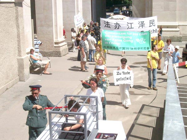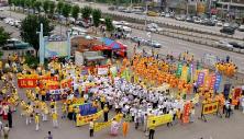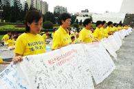 亚洲时报7月18日报道,7月20日是大陆法轮功学员被迫害五周年,数千名台湾法轮功学员昨天齐聚台北,指控中共长期迫害法轮功学员。他们在中正纪念堂广场举行悼念仪式及“反酷刑展”,以真人扮演大陆公安对法轮功学员所施的酷刑。来自全球四大洲的17名律师组成律师团,将在十一国递状控告江泽民等十三位中共官员迫害。