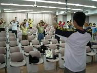的确当天参与的同修都很辛苦,可能有人一早就搭游览车从很远的地方来,可能大家想急着回家……,可是我们身为修炼人,时时刻刻都要有修炼人的风范。连睡梦中,我们都不可忘记自己是修炼人,何况我们是穿着印有法轮大法的衣服的时候。