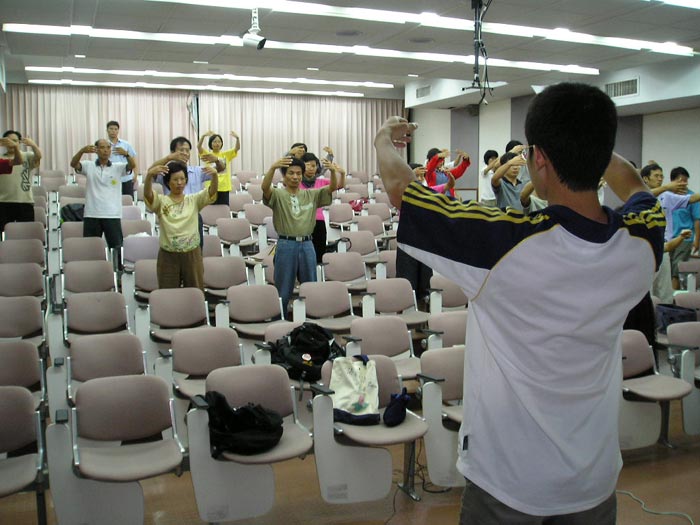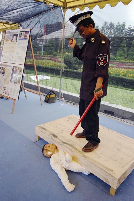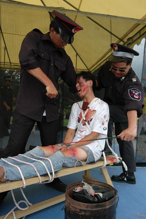台湾民视新闻7月18日报导,法轮功学员以真人模拟演出的方式,公开中国公安虐待法轮功学员的十一种酷刑,由于这些酷刑都是真人演出,演员身上的伤口化妆太逼真,参观民众不论大人小孩看到都吓坏了,对中国镇压行为更加反感。台湾法轮功正式成立台湾营救受迫害法轮功学员协会,在中国镇压事件满五周年之际,向中国发出更大的抗议声音。