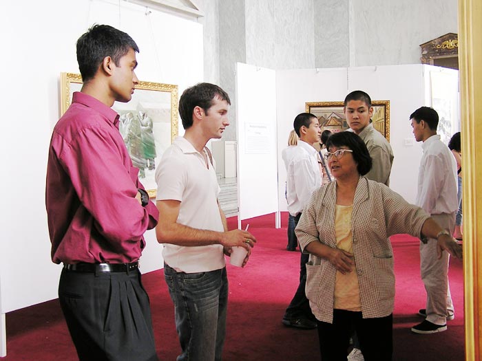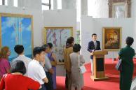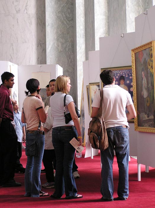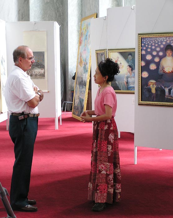 克罗拉多众议员Tancredo在会议空隙时间赶来观看画展,并特意邀请了办公室内的工作人员前来观看。